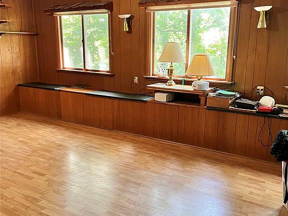 window seat 24' long overlooking the woods. There is a pass thru to the kitchen with soft close kitchen cabinets. This home presents an opportunity to personalize and make it your own, with large amounts of storage and a second entrance to the Livingroom that could be a mother-in-law suite. Hardwood floors in bedrooms and living room also has main floor laundry with laundry in basement also workshop leading to a back basement room 45'x13'.7" overlooking woods.