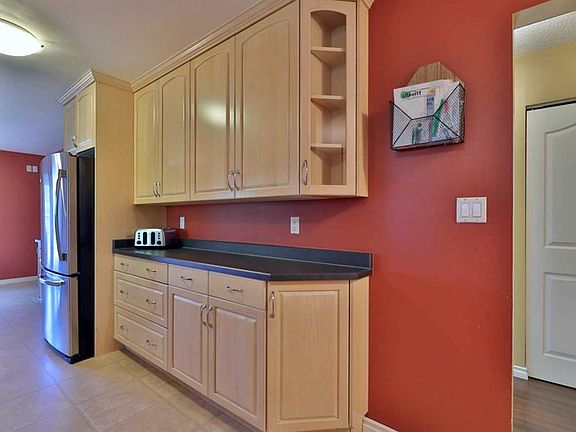 Double lotSpacious kitchenElegant maple cabinetryBuilt-in garburatorNewer flooringLarge double closetsCovered west-facing deck