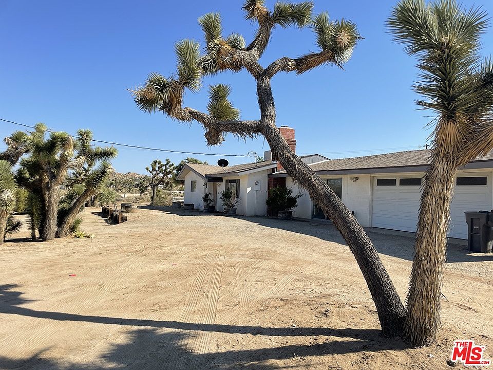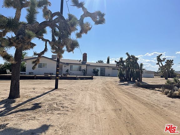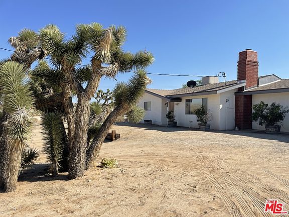 Create your own dream retreat in the high desert! This mid-century has potential to become the quintessential city escape. Situated on 2.5 acres with mature Joshua Trees and abundant natural landscaping. Vintage kitchen cabinets, fireplace, formal living room plus sitting room, office area, covered back porch and enclosed patio which offer desert and mountain views. In addition the property features a large RV shed. The 2 car garage has an extra storage area that can be used as an owners closet for airbnb. Close to Joshua Tree National Park, La Copine, Giant Rock Cafe and The Integratron. This home just needs vision to make it your own desert getaway.