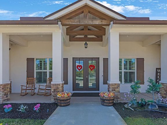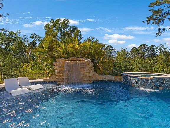 Welcome home! Discover this exceptional CBS residence in the highly sought-after Evergreen/Crane Watch neighborhood. This meticulously maintained property is situated on a 1-acre lot and was constructed in 2020. The home features 3 bedrooms, 2 1/2 bathrooms, an oversized detached 2-car garage, and a spacious flex room (19' x 10') suitable as a game room or 4th bedroom. Highlights include a metal roof, hurricane impact windows and doors, over 3,000 square feet of living space, and a custom pool with a built-in jacuzzi and rock waterfall. Additional amenities comprise a custom-built bar with a Granite Countertop and Plantation Shutters throughout. The versatile layout presents a stunning open great room with a vaulted ceiling and an exquisite island kitchen featuring high-quality custom wood cabinetry, stainless steel appliances, a stainless farmhouse-style sink, elegant wood beams, and a custom range vent hood. Adjacent to the kitchen, you will find a sizable walk-in pantry with solid wood shelving and ample storage. The home also offers a spacious laundry room with additional storage and a utility sink. The generous master bedroom boasts two large walk-in closets and an en-suite bathroom with a dual-sink vanity, a large soaking tub, and a separate shower.