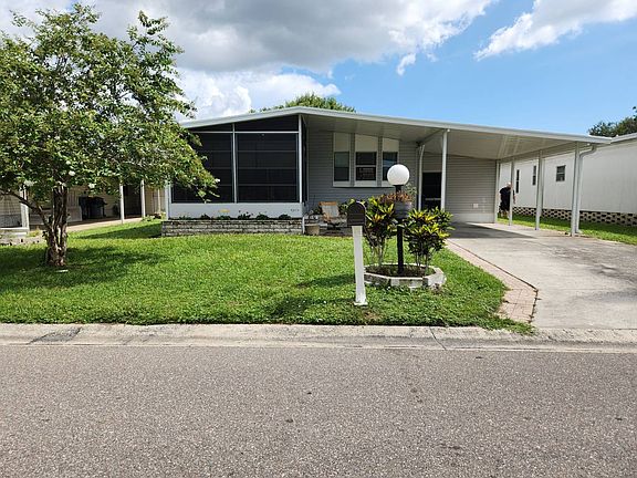Capture the moment of elegance and charm with this immaculate 2 bedroom 2 bath home in all its glory. This amazing home offers a refrigerator, range/stove, garbage disposal installed in 2021. The dryer is brand new, installed in 2024. There is a washer as well. As you enter into the home you are met with a bright and cheerful kitchen with updated cabinets with pull-out drawers to enhance your cooking experience. There is a large pantry all across the wall with pull-out drawers as well for your convenience. To the right of the kitchen is a Florida room which is enclosed so making it a possible 3 bedroom home. Another Florida room is also off the living room making it easy to entertain guests and read a good book while enjoying a good book after a long day. The floors are 2025 and new carpet has been installed in both bedrooms, the rest of the floors are vinyl waterproof sheet. Both bathrooms have been remodeled in 2020. Water heater is 2023 and the Air Conditioner is 2017. The vapor barrier under the house is 2019, vinyl siding is 2019. A 2 car carport enhances this beautiful home. Located in a great Florida lifestyle park, WindMill Manor offers a clubhouse, hot tub, community pool, library, game room, shuffleboard court, billiards and a dog park where you can romp with your furry friends. This park is centrally located to I-75, our wonderful airports, restaurants, shopping, medical buildings and of course our beautiful Florida beaches. Call me to view this home, you will be pleasantly surprised as you tour this with me, it is one of a kind so do not miss this opportunity of owning this AMAZING HOME. All listing information is deemed reliable but not guaranteed. Prospective buyers are encouraged to independently verify details through personal inspection with appropriate professionals. Integrity Mobile Home Sales does not guarantee or warrant the accuracy of this information, including measurements or property conditions. All measurements are approximate.
