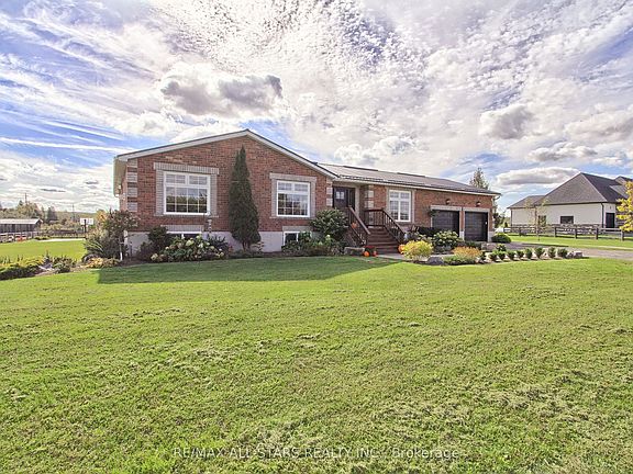 Beautiful brick bungalow on 2.47 acres with pond and horse paddock. Inside features a large country kitchen with exposed brick wall and island, perfect for family gatherings and entertaining. Cozy family room with stone fireplace and large windows. Hardwood flooring and ceramic tile throughout main level. Finished basement includes another 2 bedrooms with a large TV room, great for movie night or gatherings. Plenty of storage space and a rough-in bathroom. Landscaped fire pit and yard features plenty of planted fruit trees, as well as spruces, maples and oaks. A basketball court/paved area, great for the kids or many other uses. A spacious deck over-looking the yard, outbuilding used as a horse shelter to go along with the chicken coop and pond. A great place to raise a family with space to enjoy the natural beauty of the outdoors. Close proximity to Newmarket, Aurora, Hwy 404, York Region's forests and Mount Albert.