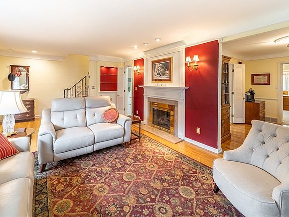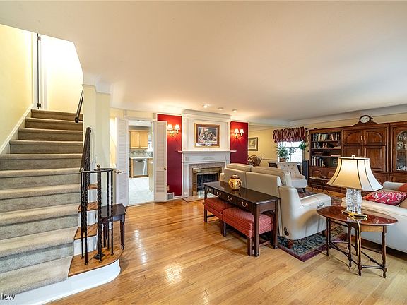 Welcome to this inviting & meticulously maintained four-bedroom, two-and-a-half-bath traditional colonial that blends classic charm with modern comfort. Hardwood flooring flows throughout much of the home, complemented by built-ins & warm architectural details. The light-filled living room features a large picture window & gas burning fireplace that flows seamlessly into the formal dining room. An eat-in kitchen with stainless steel appliances offers a comfortable work space for the resident chef & convenient gathering area with a built-in breakfast nook. The large family room addition features vaulted & beamed ceilings with three walls of windows & access to the private landscaped backyard with a covered patio and fish pond, perfect for large family gatherings or simply relaxing with a good book. A half bath & direct access to the 2 car attached garage offers additional convenience. Ascending to the second floor you will find a thoughtful layout that provides for a separate, tranquil primary suite with an abundance of closet space and a spacious en-suite. Three additional ample size bedrooms and a second full bathroom completes the second level offering plenty of space for a large family, guests, or extra room to accommodate a home office. The partially finished basement provides the flexibility for use as a rec/media room, workout room or play area with access to the large laundry/utility room. Fantastic location, less than a half a block from the Lyndhurst Community Center, where residents can take advantage of wonderful amenities including a party room, fenced playground area, tennis courts, and an in-ground swimming pool. This well-cared-for home offers space, character, and an unbeatable location—ready for you to make it your own. (HWF is available below all carpeted areas except family room).