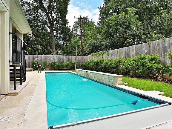 Immaculate! Recent construction 2015) 5 bedroom home on a 10,000+SF lot offers a very private back yard, 21x11 covered porch with outdoor kitchen and a pool- over 40 ft. long- with the most up-to-date technology. Large windows and 20-foot ceiling enhance the sense of space and light. Wood floors through the house with carpet in upstairs bedrooms. The primary bedroom suite is on the first floor with bay windows to the yard (SEE the attached Floor Plan and take a walk through with the Video Tour). The Kitchen is open to the Family Room and features Thermador appliances. The 23x20 central Game room upstairs adjoins a large separate Media/Flex room. The garage is oversized and there is additional covered parking behind the automatic gate and under the porte cochere. Zoned to the new Bellaire High now under construction. The house had no flooding in Harvey or any other rains-