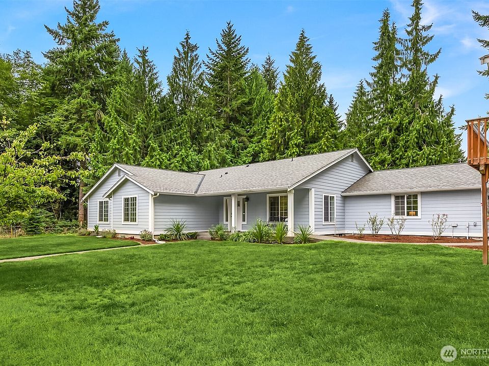 Nestled in a tranquil country setting, this gorgeous 9-acre retreat offers peaceful living just minutes from Key Center! This charming one story home boasts vaulted ceilings that bring in beautiful natural light. Enjoy fresh fruit from your orchard and stroll the meandering trails throughout the property. Your animals can stretch out in the barn with two oversized stalls, complete with a fully insulated and heated tack room. A 30x36 ft shop is ideal for the car enthusiast or has ample room to store all your recreational toys. Work from home in your detached bonus space or use as playroom. Perfect for a hobby farm or bring the dirt bikes and quads. Set far back from the highway, you can relish the seclusion of your personal sanctuary.