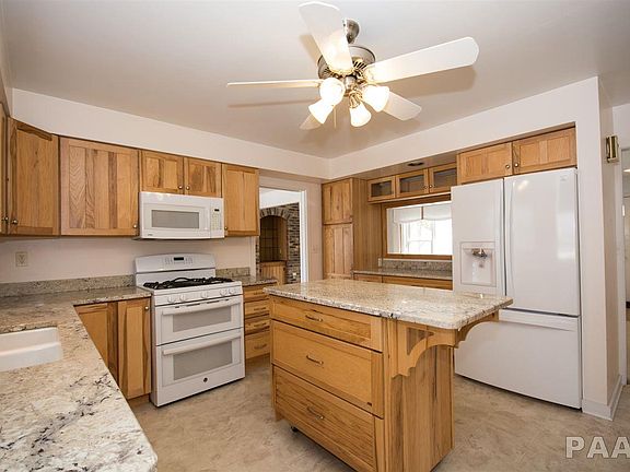 Sweeping, beautiful river & valley views from this sharp, all brick ranch sitting on a double lot (nearly a 1/2 acre) - right in between Peoria Heights & Junction City. Lots of hardwood flooring, granite tops in the updated kitchen, master suite addition w/ walk-in closet & wonderful master bath. Oversized two car garage, main floor laundry, finished walkout basement with a second full kitchen. Large living room open to the kitchen, formal dining, generous deck, terrific location & the tremendous views make this home one not to be missed. Short bike ride to Peoria Heights or Junction City.