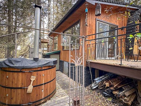 Charming Rustic Creekside Cottage – Bergen Springs Estates Nestled in a private, forested lot along the creek, this beautiful cottage in Bergen Springs Estates offers the perfect blend of rustic charm, comfort, and natural beauty. Set on one of the community’s most coveted lots, this year-round retreat is surrounded by mature trees and lush vegetation, creating a peaceful and private escape. Inside, the rustic interior features warm wood finishes, deceptively spacious with a living room, dining area, a cozy wood stove will keep the chills off, and a well-equipped galley kitchen. There’s room to comfortably sleep five or more, including two bedroom areas and a cozy loft space, along with a three-piece bathroom and a cistern-fed water system housed in a heated, insulated room for dependable year-round use. Outdoors, you’ll love the wood-fired hot tub, outdoor shower, and spacious deck overlooking the creek — the perfect setting for morning coffee or evenings under the stars. The property offers ample parking, natural landscaping, and an authentic cabin-in-the-woods atmosphere. Neighboring adjacent creek side lot is also for sale separately and creates a 1/2 acre private oasis. Residents of Bergen Springs Estates enjoy a range of community amenities including a community hall for private events, two dog parks, a stocked fishing pond, community gardens, playground, and disc golf course. Just beyond the community, Fallen Timber Creek offers fishing, swimming, and kayaking opportunities in a pristine natural setting. The community is serviced by holding tanks and cisterns for winter and seasonal water in the summer months approx May-Oct. The nearby town of Sundre provides all essential services — shopping, dining, recreation, and medical facilities — as well as easy access to lakes, rivers, and trails ideal for hunting, fishing, quadding, and outdoor adventure. This is a rare opportunity to own a year-round creekside retreat in one of Alberta’s most charming recreational communities — where comfort, nature, and relaxation come together. Only an hour from Calgary but a world away from the city!!!!