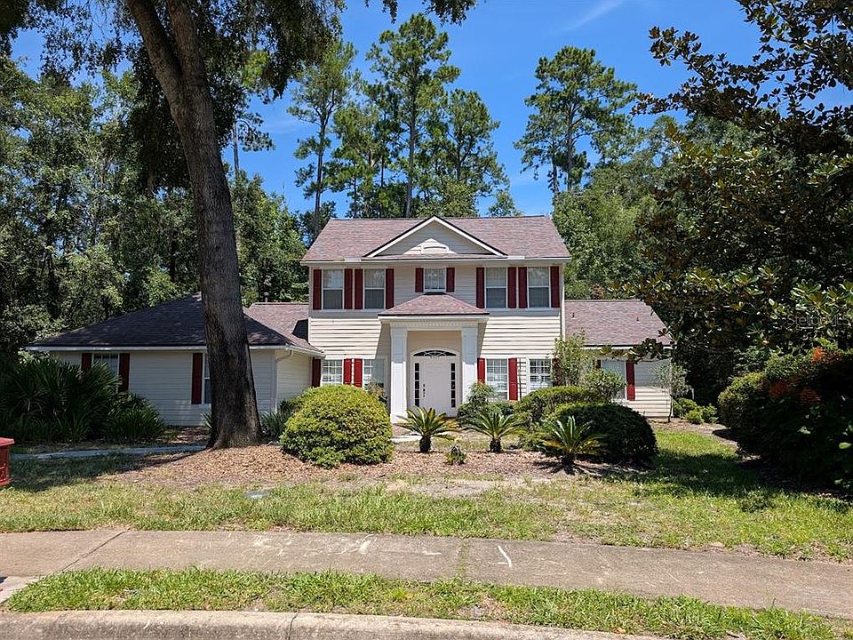Spacious 4 bedroom, 3.5 bathroom home in Kensington Park near Hunter Crossing and the Millhopper area. This home offers over 2,600 sq. ft under air with the primary suite located downstairs featuring a walk-in closet, garden tub, and separate shower. The additional bedrooms are upstairs. Upon entry, the formal dining room is on the left and a versatile office or den is on the right, leading into a large living room and an open kitchen with eat-in space. The home also includes an inside laundry room and a 2-car side-entry garage. Situated on a cul-de-sac in a desirable location, this property combines comfort, space, and convenience. Rent includes lawn care.Information and property details are deemed reliable but not guaranteed