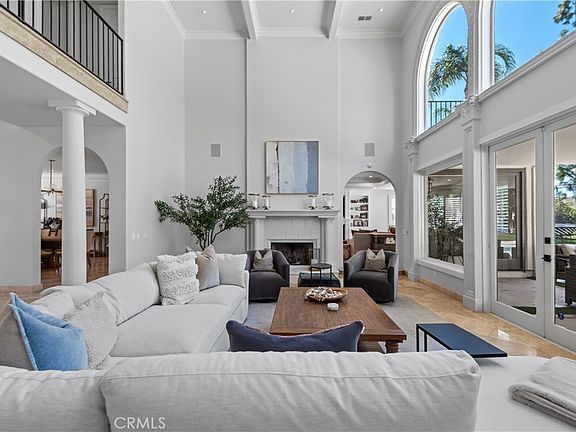 Stunning updated Tuscan Villa in the exclusive guard gated community of Mountain View Estates. This 5 bed 5 bath home sits on a private cul-de-sac view lot with approximately 5900 sq. ft. of luxury living space. The dramatic entry leads to the light filled 2 story living room with floor to ceiling Palladian windows. The updated kitchen, with a large center island & top of the line stainless appliances, opens to the grand size family room complete with a fireplace, wet bar, built-ins & French doors to the backyard. The formal dining room with beautiful lighting is both large and elegant. This open floor plan is ideal for crowd size entertaining. There are 3 generous size bedrooms downstairs plus 3 bathrooms & a large laundry room. Upstairs the primary suite features a sitting room, fireplace, built-ins, an exercise room with a wet bar, 2 large walk-in closets, a bathroom with dual vanities, spa tub and shower, plus a huge balcony with views of the surrounding hills. An additional bedroom upstairs has a pretty bathroom, walk-in closet & balcony. Entertain with ease under the large covered patio, sparkling Pebble Tec pool, spa, & lush landscape. Amenities include plantation shutters, stone & hardwood floors, organized closets, & always green artificial grass. This gorgeous home has wonderful curb appeal, an excellent open floor plan, quality amenities, privacy & views. Located in one of the most sought-after communities with a magnificent entry, tennis & pickleball courts, security and award winning Las Virgenes Schools. Nothing else like it!