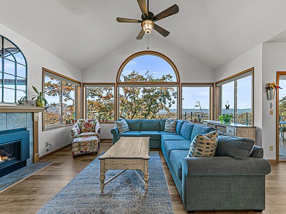 Delightful Pioneer Hills home w/11.5gpm well on five acres! Located in the gorgeous rolling hills of SW Medford, minutes from town. Long-range views of the valley, reaching the Table Rocks on the horizon! Perfect timing for an incredible value. Purchased for $825,000, this property now offers an addtl. $135,000 of impressive recent improvements. A welcoming main level w/expansive common areas, gas fireplace & large view-facing windows. 440 sq.ft. deck for outdoor dining. Bright master ensuite w/walk-in closet and cozy private balcony. Start your days with luxury views in the floor-to-ceiling tiled shower feat. rain & handheld showerheads. Split floor plan to guest bdrms & bath. Laundry room to drive-through garage. Upstairs reading nook loft. Downstairs w/mother-in-law possibilities! Living area bet. generous bonus room & 4th bdrm w/adj. full bath. Lovely view patio w/fntn, multi-hole putting green, chk coop & acreage for more!
