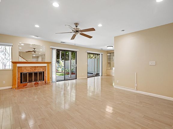 Gorgeous and spacious 4-bedroom, 2.5-bath Pleasanton home with a 2-car garage. The home features wood-laminate flooring, a gas fireplace, skylights for natural light, ceiling fans, mirrored closets, and an indoor laundry room. The updated kitchen includes a gas cooktop, pantry, breakfast bar, plenty of counter space, and a large dining nook that opens to a private patio. All four bedrooms are generously sized, some with organized closets. The bathrooms have been recently refreshed with new grout and cleaning. The primary suite offers a walk-in closet, a large bathroom with dual sinks and a shower, plus a balcony with peaceful views of the greenbelt and mature trees. The low-maintenance backyard has quality artificial grass and direct access to the greenbelt walking paths. Enjoy community amenities including 3 pools, clubhouse, tennis courts, and trails. Rent includes water, sewer, and access to all community facilities. Great location near Stoneridge Mall, BART, I-680, I-580, shops, restaurants, and top-rated Pleasanton schools. Available now don't miss this opportunity!