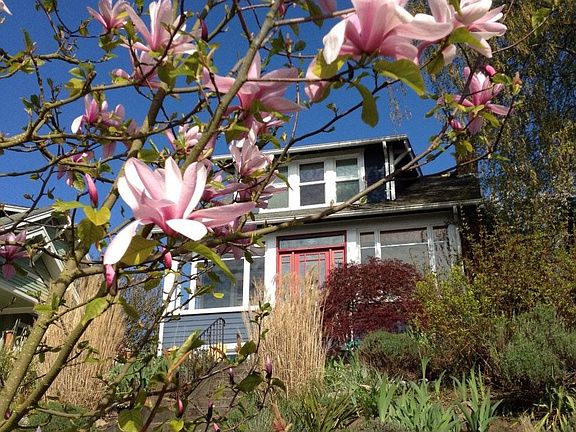 Historic craftsman view home in Seaview neighborhood of West Seattle. A cobblestone patio awaits in this remodeled 1909 Craftsman two-story plus basement home with sun porch, views of the Olympic Mountains and Puget Sound. Extra large eat in kitchen, high ceilings, crown moldings, drought tolerant landscaping and organic vegetable garden. Telecommuters will find the basement setup ideal for home office activities. Highly regarded Fairmount Park Elementary is the assigned attendance area school. Located 15 minutes from downtown Seattle, between Alaska and Morgan St. Junctions, and just two short blocks from California Ave. bus stops. Walk to shopping, bakeries, restaurants, and over a dozen coffee shops. Ideal location, very friendly quiet street close enough to walk to Alki Beach and Lincoln Park. House Features: Approx 2400 sqft Two bedrooms plus a bonus room upstairs & 1 additional bedroom in recently studs up remodeled basement Large living room/dining room with hardwood floors and fireplace with extraordinary antique floor to ceiling hand carved mantle 3 bathrooms (one on each floor) each with shower and one with shower/tub Newer gas furnace/hot water heater/wall insulation/windows for energy efficiency Stainless steel refrigerator , Gas stove and stainless dishwasher in large, professionally remodeled eat in gourmet kitchen Full size front-loading washer/dryer Professionally remodeled family room and nicely finished laundry/storage room in basement Detached, alley accessed one-car garage with additional adjacent dedicated parking spot, plus ample street parking out front Fenced landscaped yard with cobblestone patio for entertaining Perfect sized in city vegetable garden and blueberry bushes. 12-month lease, first & last months rent and deposit of $3000 required Background and credit check required application fee of $25 per applicant. Renter must carry rental insurance for the lease terms. Lawn and yard maintenance tenant responsibility. Watering of plants during hot season expected. No smoking, cats and dogs negotiable along with an additional deposit fee. Criteria for tenant selection provided upon request.
