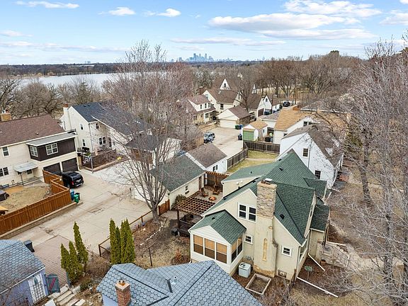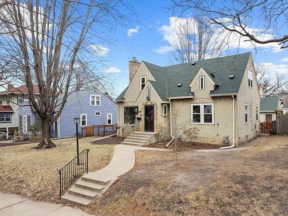 This is the one! Charming Tudor style home with 4 bedrooms and 3 bathrooms full of character and comfort. Upon entry you are greeted by coved ceilings, gleaming hardwood floors, and original stone accented fireplace. The 2021 updated kitchen pairs beautifully with the formal dining room featuring built-ins and crown moulding. The bright three seasons porch rounds out the main floor living space. Main level features two bedrooms and a full bathroom. Upstairs offers spacious bedrooms, a walk in closet and a recently renovated upstairs bathroom. The lower level boasts a cozy family room, wine nook and a fun 'Irish Pub' themed hangout space. Outside, entertain in style with a two-tiered deck, pergola, and fire pit patio. All just half a block from Lake Nokomis—parks, trails, and lakeside living await!