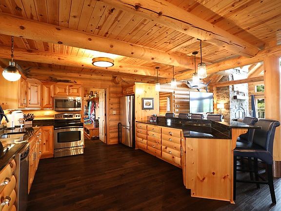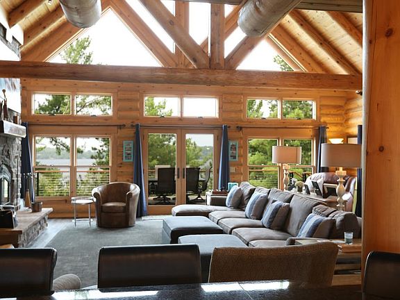 Whole Private Island, Lake Vermilion! Secluded Yr Round Voyageur Log Home In Towering Pines, Short Boat Ride Across Calm Water To Town—Less Than Half Mile To Stuntz Bay. Located in an area of breathtaking scenery east of Ely Island where there are sparkling bright blue bays created by dozens of small islands & miles of picturesque mainland coastline, which is the State Park. 2552SF, 3BR/2BTH Main Cabin, Guest Cabin, Sauna, Treehouse Gazebo, 4 Dock Wharf w/outdoor music, 4 acres, 1560 ft lakeshore. Stainless/granite kitchen w/island open to great rm w/log trussed vaulted ceiling, engineered wood flrs, massive stone wd burning fireplace, walls of Marvin windows showcase mesmerizing 360 degree blue water vistas, glass doors open to spacious wrap around maint free sky deck, bedrooms open to sounds of water lapping shore. Gradual, park like grounds w/rock outcroppings, cart path to the door. Permanent electricity plus back up generator. Economical off peak Steffes heat. Cent air. Swim or catch Walleyes right off your dock, relax & enjoy unrestricted views across the water!