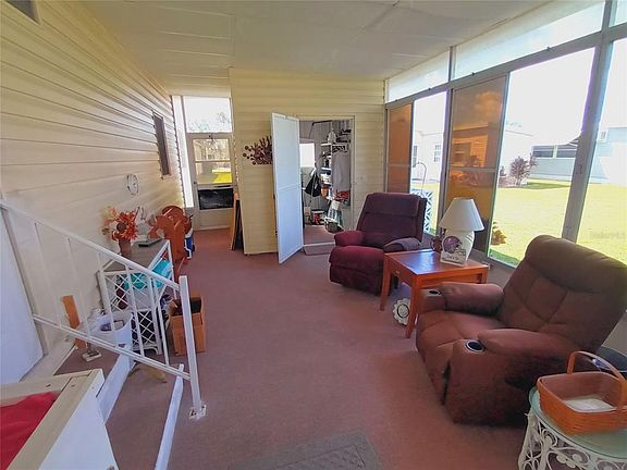 This furnished two-bedroom, two-bathroom home spans 1,060 square feet and includes spacious bedrooms, dining room cabinets, a new TPO roof, carport, covered laundry, and a screened-in area. Tri-par Estates offers amenities such as a year-round heated/cooled pool, spa, tiki hut, pickleball, fitness center, shuffleboard, miniature golf, horseshoes, game rooms, plus arts and crafts classes. The clubhouse hosts frequent social events. Conveniently located near downtown Sarasota, World-renowned beaches including Siesta Key and Lido Key are only a short drive away for leisure and relaxation, marinas, shopping, dining, museums, and the airport. Land rights are included with an annual $1,648 fee in your property taxes—no direct HOA fees. The community is golf cart-friendly and offers optional RV/boat storage.