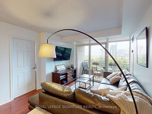 Large, well designed 2 Bedroom Den Unit With 2 Baths (1 ensuite)! Open Balcony Has A Clear Eastern View Over Park! Excellent Open Concept Split Bedroom Layout! Engineered Hardwood Flooring! Large Kitchen With Centre Island! 1 Owned Parking Included! Super Convenient Etobicoke Location Steps (really!) To Ttc Subway & Go Kiss & Ride Kipling Station, Shopping & More! Spectacular Tridel Building Loaded With State Of The Art Amenities Including Guest Suites, Pool, Virtual Golf & More!