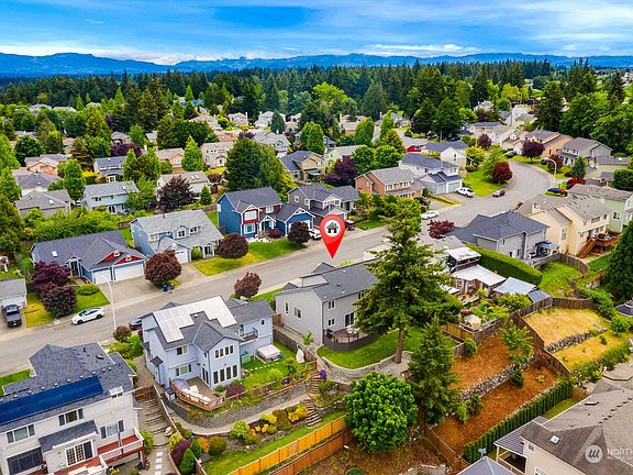 Pre-inspected 5 bed stunner on quiet street with great valley & Olympic Mt. view w/sunsets from your deck ready for you! Larger 6615 sq ft lot with front & back yard irrigation, small utility trailer or boat parking, & fire pit space make the outside of this home special! Inside find a magazine worthy kitchen, formal dining room, bonus room & main floor bedroom which could also serve as a den / office. Upstairs has 4 additional bedrooms including your primary retreat with gorgeous 5 piece bath. Furnace has been serviced, new hot water heater in 2021, new roof in 2019. Enjoy the Lakeland Hills community w/ 15 parks & playgrounds in a 1 mile radius & nearby Town Center with groceries, restaurants, pubs, coffee, fitness, medical & more.