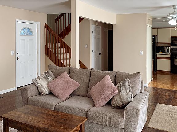 Recent improvements include new vinyl siding, windows, and a front porch (2019), along with durable vinyl plank flooring throughout the main level (2019). The basement was fully waterproofed in 2017 and comes with a lifetime transferable warranty, plus a double sump pump with backup battery for peace of mind. The well pump, tank, and gutters were also replaced in 2017.