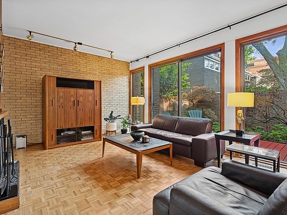 Welcome home to this special opportunity: this rarely available Mid-Century brick townhome is on a beautiful tree-filled location in the heart of Hyde Park, steps from Hyde Park Produce and UChicago Campus. The Skylights throughout the home offer wonderful light cascading in daily with the floor-to-ceiling balcony doors with that mid-century timeless architecture. The home features a wood burning fireplace you can warm up to in the beautiful cozy Chicago winters. All seasons enjoy the lovely the front deck/ meditation garden, and the back entertaining area featuring east facing sun with lush greenery while remaining conveniently close to the kitchen, double-level dining room and living room. This Hyde Park townhome represents an exceptional find, not only for its rarity but also for its superb off-street location, with captivating design and thoughtful features. Enjoy the added luxury of being steps from Lake Michigan, the central Hyde Park retail areas and Hyde Parks nationally recognized cultural institutions, Art galleries, and Museums including The Kenneth C. Griffin Museum of Science of Industry, The Hyde Park Art Center, Court Theater, and The upcoming Obama Presidential Center (2026). This community offers an incredible living experience with lakefront beaches, bike trails, marinas, golf courses, tennis courts, and parks. Transportation is readily accessible with the University of Chicago bus line, Chicago Metra, and CTA nearby. This unique Townhome opportunity in your own tree-lined urban oasis is special. Welcome Home! Move in ready or add your updates as you see fit, the equity in this home will just rise with everything you put in. Note Completely NEW HVAC, (fall 2025). There are no homeowner assessments for this home.