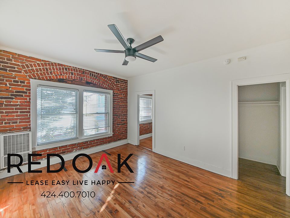 Sophisticated Studio with Exposed Brick Wall, Gorgeous Floors, Stainless Steel Appliances, and On-Site Laundry ~ In the Heart of Vibrant Koreatown! Key Features: Situated Perfectly: Fall in love with this historic building, and your new vintage-inspired home. Bright & Airy: The windows allow the natural light to stream in, showcasing the gorgeous hardwood floors and offering charming views of the local area. Enhanced Privacy: Window blinds allow you to control the light and offer additional privacy. Clever Storage Solutions: Stay organized effortlessly with a recessed storage area and walk-in closet space. Temperature Control: An efficient gas furnace and breezy ceiling fan will ensure that your home is always comfortable. Modern Kitchen: Featuring stainless steel appliances, gorgeous granite countertops, and custom hardwood cabinetry. Refreshing Bathroom: Enjoy a well-lit mirrored medicine cabinet, pedestal sink, and soaking tub with shower option. Pet-Friendly Community: This community warmly welcomes your small dogs and cats with a nominal pet rent. On-Site Laundry: Say goodbye to laundromat hassles with the convenience of on-site laundry facilities. Convenient Location: Perfectly situated just a five-minute walk from the Metro Station (Purple and Red Lines), and within walking distance to numerous boutique eateries, cafes, and stores. You'll be close to Downtown, Silverlake, and Hollywood, offering a perfect blend of urban convenience and vibrant city life. This one won't be on the market very long! Available for an immediate move-in. LEASE TERMS: 1 Year Lease Pictures and descriptions are of a Model Unit Floor Plan and Details may vary Square Footage is approximate. Street Parking Only. Showings may not be 1-on-1. Listed pricing and special offers are only valid for new residents. Pricing and availability are subject to change at any time. Red Oak does not warrant or represent that image renderings on this website are an accurate representation of every floor plan available at the Property. Floor plans may vary unit by unit and by location at the Property. Please contact the Leasing Office to schedule a tour of the Property and the particular unit you are interested in. Pricing and availability are subject to change at any time.