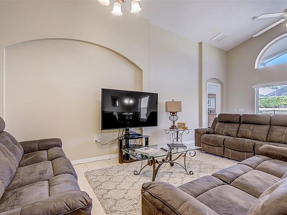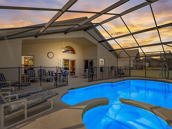 Experience the best of Florida living in this fully furnished pool home in the Sanctuary at West Haven. The open layout and vaulted ceilings create a bright, welcoming atmosphere from the moment you walk in. The kitchen features a large center island, ample storage, and direct access to the dining and living areas—perfect for entertaining family and friends. The primary suite offers a relaxing retreat with sliding doors to the pool and a spacious ensuite with dual vanities, a garden tub, and a separate shower. The garage has been converted into a game room, adding extra space for fun and entertainment. Step outside to your private backyard oasis with a screened-in heated pool and spa, outdoor shower, and a generous pool deck ideal for lounging or hosting gatherings. The home backs onto open green space, providing added privacy and a tranquil view. A new roof (2024) offers peace of mind and lasting value. Conveniently located near theme parks, shopping, and dining, this property is perfect as a full-time residence, vacation home, or short-term rental.