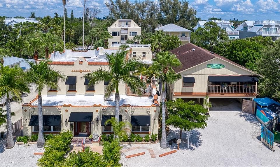 Endorsed by John Ringling himself and optimally situated directly across from beach access #9 on Siesta Key, the Ringling Beach House represents an opportunity to invest in a one-of-a-kind property located on a world-renowned coastline. Originally built in the 1920's as staff housing for the circus empresario, the old Florida Spanish architecture stands like a historic sand castle moments away from the soft white sands of the beach. 11 resort-style accommodations with both coastal and big top inspired names - like Ringmaster and Sea Turtle - are spread out across the 4 buildings and .67 acres, delighting with recently updated and furnished interiors. Each unit includes a kitchen fully equipped with everything needed to make a family dinner, separate dining, living and bedroom areas. Some units additionally offer a washer/dryer. Amenities add to the already strong income-producing potential with two pools, outdoor grills, romantic gazebos and lush gardens. Walk across the street with provided beach towels, chairs and umbrellas to enjoy a day away from devices and underneath the warm sun. With an option to add a boat dock on the grand canal, you will have a true beach-to-bay property. A short walk to Siesta Village and an array of island cuisine, shopping and night life, the lot is your canvas to craft the ultimate getaway or continue a legacy of helping families connect with the beautiful natural splendor of the Gulf Coast.