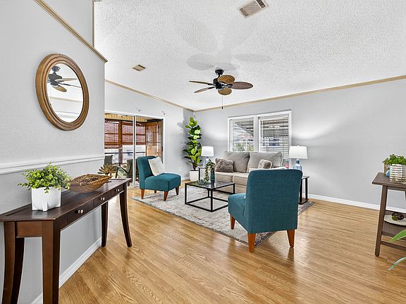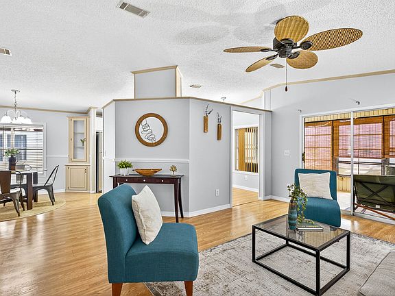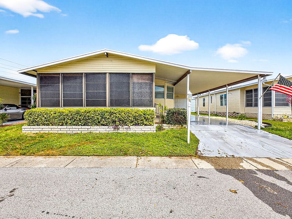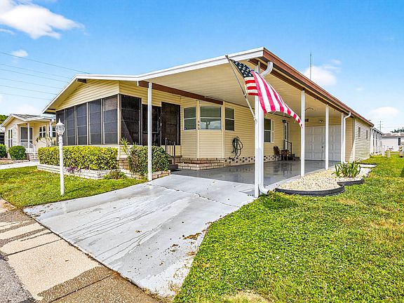 Located in a 55+,Age qualified, .Active resort style, Non Flood Zone, Pet friendly, land leased Golf community. Monthly lot rent includes: Cable TV, Internet WiFi, lawn mowing, trash, property tax, amenities and activities. Beautifully Updated spacious 2 bedroom, 2 bath home with an inviting screened in lanai, perfect for coffee, drinks and sunsets! Updated countertops in kitchen and both bathrooms, plenty of cabinets, updated appliances, new light fixtures, new floors throughout, updated plumbing. Spacious Living room and Dining room. Open Concept, Large bedrooms, walk in closets, 2 car covered carport, 1 garage, plenty of storage! Owner will provide a 4 PT inspection! Pristine Move In condition! Wont last! Make an Offer! Call for an appointment today!