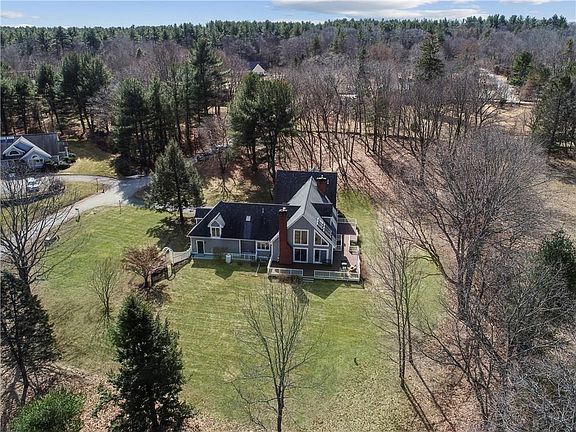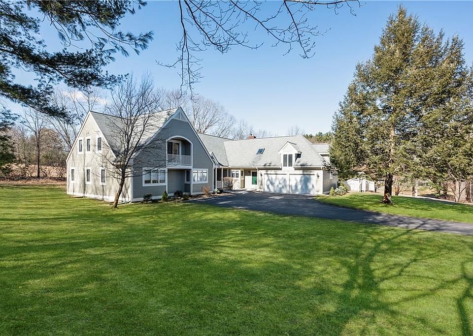 Estate setting on 4+acres with stone walls and seasonal vistas all to be enjoyed from the mahogany deck that wraps around two sides of this top notch Contemporary. All systems are updated to the highest standards. Double entryway and inviting foyer open into the magic that awaits. Impressive elegant master suite remodeled with a spacious custom walk-in closet and luxurious bath with soaking tub. An additional first floor bedroom is currently used as a home office. Abundant light shines through the sliders that open onto the deck from multiple rooms and the vaulted ceilings enhance the ambiance. There is a bridge across the second floor overlooking the living room and family room that leads into an open sitting area perfect for relaxing. A full exercise room, mudroom, first floor laundry and organized two-car garage speak to the way this property has been maintained. Updates include a new boiler and oil tank, hardwood floors and driveway. This is a dream come true home.