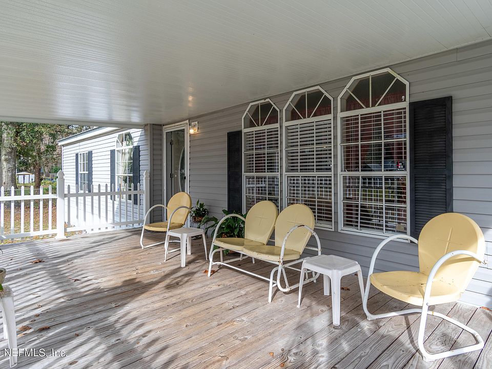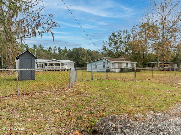 Room to roam on over 1 acre in the heart of Oceanway. Bring your Rocking chair for the large front porch of the main home with over 1900 sq ft of open floor plan living space.Large kitchen with island, cafe area overlooking the family room with fire place. Large Owner suite has bath with garden tub, separate shower, double vanity, and walk-in closet. Easy maintenance with luxury plank flooring in the main areas and carpet in the bedrooms. Enjoy winter bonfires and summer afternoons on the huge screened patio, perfect for family gatherings, cookouts and relaxing evenings after a long day. Need a place to park the boat or weekend toy? With a garage and 2 sheds you have plenty of space. Close to shopping, entertainment and restuarants. 2nd dwelling is AS IS & currently used as storage.
