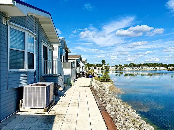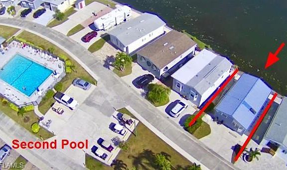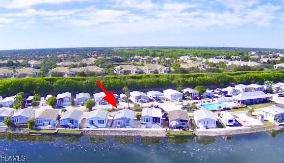 Outstanding Location within the Imperial Wilderness Condominium Association of Naples, FL— diagonal from the second pool & spa area and on the water! This beautifully maintained, true 2Br/2Ba home features LAND that YOU OWN and spectacular water views from the spacious living room and eat-in kitchen area. The home offers high ceilings, updated plumbing, laminate flooring throughout, and is being sold furnished. Both bedrooms are roomy; the owner’s en suite features 2 closets and a large bathroom area with a generously sized shower. The outside boasts vinyl siding, a metal roof, composite plank steps, and a rear patio area. The location of IWCA is ideal! It is a gated 55+ community positioned minutes from numerous restaurants and stores. Plus, there is easy highway and airport access (45-minute drive to Ft. Myers via I75). Beaches are also close– 11 miles to the Naples beaches and 8 miles to Marco Island beaches. Of extreme importance, IWCA was never flooded and has not been affected by any recent hurricanes. This home is ideal for seasonal, full-time, or rental purposes. The HOA fee of $898. per quarter covers many of your needs: water, lawn care, basic cable, trash/recycling, and community amenities. Plus, there are numerous community amenities: 2 pools with spas, a nature trail, pickleball, tennis, horseshoes, bocce, pétanque, memorial garden trail, the ability to drive an electric golf cart within the park, and 2 dog parks (there is a 1 pet, 40lb. max., restriction). On top of everything, IWCA offers an extremely active social events calendar (daily events).