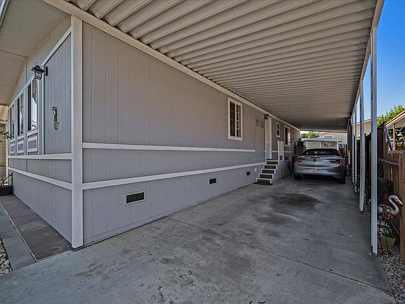 Welcome to this gorgeous light-filled 2 bedroom, 2 bathroom manufactured home in a tranquil, yet convenient location in San Jose. This sunny home has loads of character and features warm and inviting rooms, generously sized living spaces, huge side porch, and a nice-sized backyard. As of 2021, new features include exterior/interior paint; skirting; waterproof wood flooring; front/back/3 doors inside the house/patio door; all insulated windows; accent wall in the hallway; new vanity and medicine cabinet in both bathrooms; full length 4 car carport; huge storage shed (120 sq ft); earthquake bracing; and cedar wood flooring in all closets. The remodeled kitchen features stainless steel appliances, tons of cabinets and a large peninsula island. Both bedrooms are spacious; the master bedroom has a walk-in closet with sliding barn door and remodeled bathroom with dual sinks and large walk-in shower. The outdoor space features a low maintenance yard with a shaded deck. All appliances, washer/dryer, and A/C are included. Call today for more information! This is a manufactured home on leased land (not real estate); the land lease is $876 per month. 1977 Sunnybrook Serial #: 1180A/B HCD #: DL1164796 *List price excludes closing costs & escrow fees. *All information provided is deemed reliable, but is not guaranteed and should be independently verified. *Buyers are responsible for verifying the accuracy of all information.
