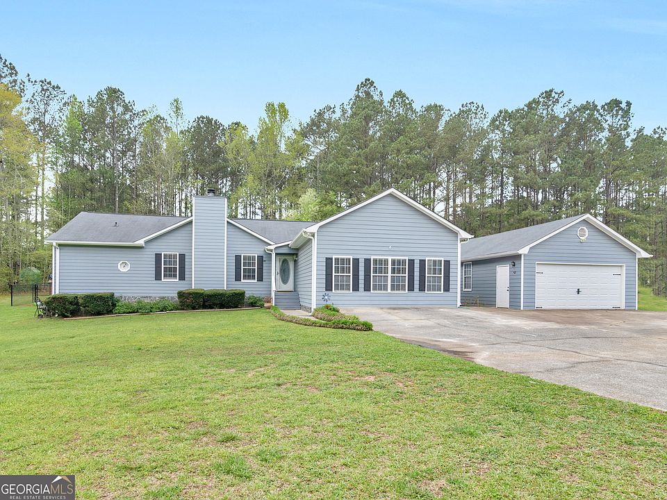 Welcome to your new home nestled on a picturesque 1.5-acre lot, where tranquility meets modern comfort. This charming ranch-style residence boasts 3 bedrooms and 2 bathrooms, offering the perfect blend of spaciousness and coziness. As you step inside, you're greeted by gleaming hardwood floors that flow seamlessly throughout the home. The heart of the house is the vaulted family room, adorned with a majestic fireplace, creating an inviting ambiance for gatherings or quiet evenings curled up with a book. The primary bedroom, conveniently located on the main level, is a sanctuary of relaxation featuring a generous walk-in closet, a luxurious soaking tub, and a separate shower for indulgent moments of self-care. The split bedroom plan ensures privacy and convenience for all occupants. An added bonus awaits as the attached garage has been thoughtfully converted into finished living space, currently serving as a versatile workout room, providing ample space for fitness enthusiasts or hobbyists. Outdoor living is equally enchanting with a fenced backyard offering security and privacy, a detached garage providing additional storage or workshop space, and a shed for all your gardening tools and equipment. Entertain guests or simply unwind on the expansive back deck, complete with ceiling fans, where you can bask in the beauty of nature and enjoy al fresco dining or lazy afternoons soaking up the sun. This property offers the perfect blend of indoor comfort and outdoor serenity, making it a truly exceptional find for those seeking a peaceful retreat to call home. Don't miss the opportunity to make this dream home yours today! Ask how you can receive up to $1500 credit by using one of our preferred lenders. Exclusions may apply.