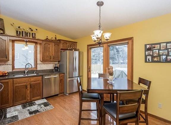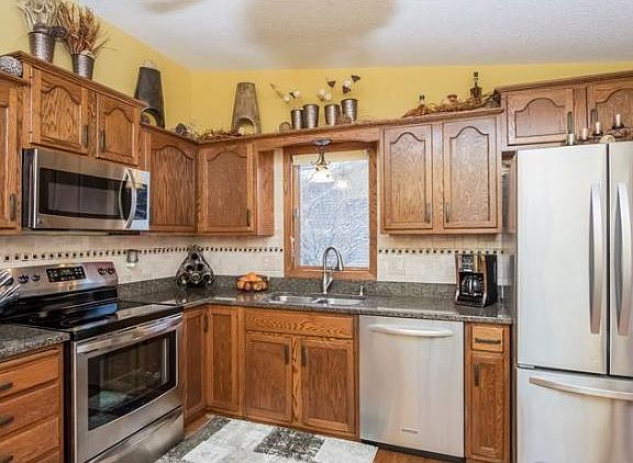 Welcome Home to this immaculate 4 BR, 2 BA, 4 level split home. You will be greeted with an updated kitchen with granite counters & SS appliances. Quaint eat in dining area along with a formal dining room & wood floors. Go up to an inviting living room & private master suite with walk-in closet. Entertain in the cozy family room with gas fireplace. Newer roof, siding & windows & more. Stop to look at the finished, insulated & heated garage! Superb yard & landscaping with sprinkler system.