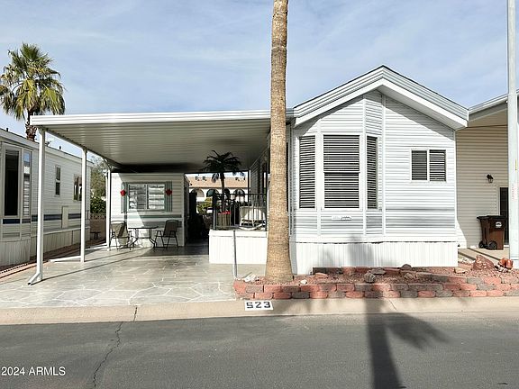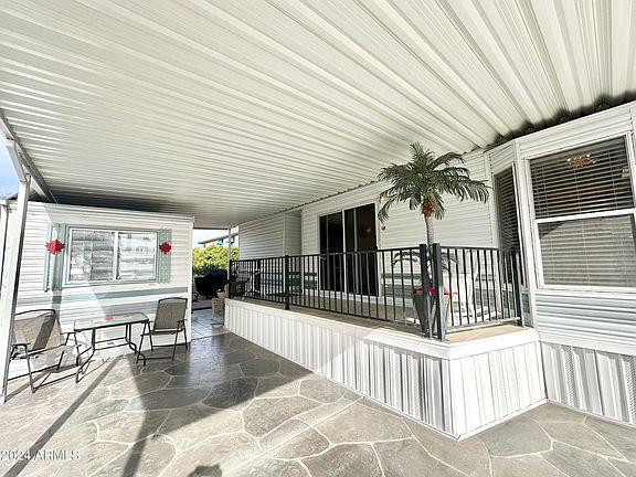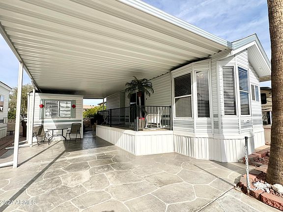 This CHARMING park model home is located in a desirable 55+RESORT community where you OWN THE LAND and can enjoy a wide range of activities to keep you engaged. Nestled at the NORTH end of the resort, this home boasts a SOUTH FACING orientation with wide OPEN SPACE BEHIND, offering PRIVACY and an IDEAL LOCATION. Beautiful CURB APPEAL with maintained front offering DECORATIVE COATED CONCRETE CARPORT, A TILED front deck perfect for relaxing or entertaining, complemented by a PAVERED back PATIO ideal for lounging, BBQing & PLENTY of space for OUTDOOR SEATING. Inside you will love the FRONT KITCHEN with UPGRADED BEAUTIFUL CORIAN LOOK COUNTERTOPS, RICH QULAITY CABINETRY, A STAINLESS UNDERMOUNT SINK and a FULL SIZE STOVE. The cozy dining nook adjacent to the kitchen features LARGE WINDOWS NEW BLINDS, offering plenty of natural light. An OPEN and INVITING living area with glass door slider leading to the GRAND DECK IS a great relaxing area. A charming BEDROOM with QUEEN SIZE BED, LARGE MIRRORED CLOSET & A FABULOUS BUILT IN VANITY AREA. NEW blackout drapes ensure restful sleep! The bathroom offers a TUB/SHOWER COMBO & ample room for dressing. GREAT storage throughout this home! FANTASITC SHED with a CUSTOM QUEEN MURPHY BED, FULL SIZE WASHER & DRYER and abundant space for hobbies( currently set up as a sewing room) or a great place to store all your extras! SEALED AND COATED ROOF for added durability & NEW A/C UNIT installed approx. 2years ago. Every detail of this home has been thoughtfully cared for, offering a dream sunny escape. IT'S PERFECT FOR your next adventure! COME LIVE THE LIFESTYLE YOU DESERVE! This home has been WELL LOVED!