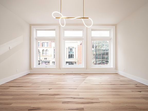 Expansive floor-to-ceiling windows flood the living space with natural light and frame the vibrancy of Main Street below. Entertain with ease in the designer kitchen, where a massive island, premium fixtures, and high-end finishes set the stage for memorable gatherings.