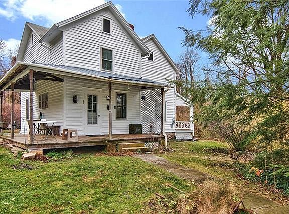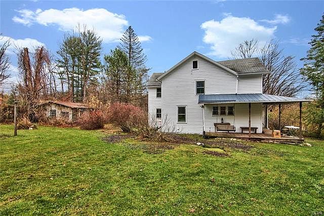 Enchanting Pocono Farm House! Offering 3-4 Bedrooms, 1 1/2 Bathrooms & Full Walk-Up Attic. Interior Boasts Original Wide-Plank Wood Flooring & Ceilings, Kitchen w/ Large Pantry & New Vintage Style Propane Stove As Well As Family Room w/ Projector. Outside Features Park-Like Setting w/ Pond, Garden, Covered Wrap-Around Porch, Pergola Deck & Seating Area w/ Chimenea! Simple & Humble Energy Flows Throughout This Tranquil Home Abundant w/ Custom Accents. Detached 360 Sqft Outbuilding w/ Electric Doubles As Bonus Workshop Or Utility Shed. Situated In Pleasant Valley School District On Flat 1 Acre Corner Parcel Adjoining 35+ Acres Of Protected Natural Area & Historic Park Land For Added Privacy & A Peaceful Scenery! No Community Dues Or Fees & Total Taxes Less Then 2,700 Per Year. Come & Relax!