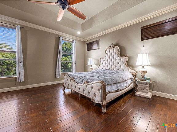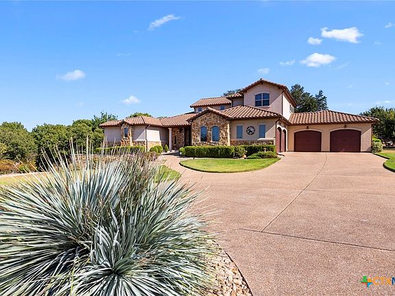 Gorgeous Tuscan style house with Mediterranean style tile roof; as well exceptional Texas open nature surroundings in privacy with quietness. Enter into everything “custom design” as you enter custom made steel frame doors (front and back) to the open foyer front entry with archway vaulted ceiling. Off to right entry is a formal study with luxurious finish with coffered beam ceiling with access to half guest bathroom. Great room with dramatic over 20 feet high ceiling with Douglas Fir Beams with large open windows to a beautiful nature view. This house is design with class and style to entertain guests indoors and out with formal dining/flex sunroom and deck to accommodate casual gatherings or large scale formal parties seamlessly with outside scenery view with custom stone gas fireplace and built in BBQ grill. The open concept kitchen is a chef’s delight with abundant custom cabinetry, custom “copper” vent hood and large sink, large six burner gas stove, double oven and custom granite counters. The master bedroom is spacious with luxury ceiling and crown moldings as well as luxurious master bathroom with custom style tiles with duel headed shower and separate tub; his and hers separate walk in closets. The two guest/secondary bedrooms upstairs are large with walk-in closets and a spacious bathroom with walk-in shower.