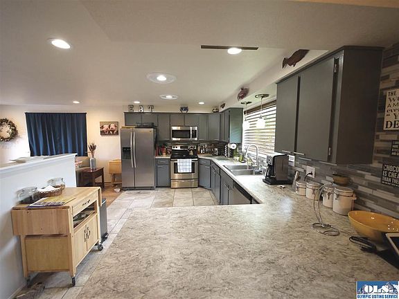 Great home located in town on a corner lot with a fenced in backyard. Features include laminate flooring in the living areas, tile flooring in baths & laundry. Open kitchen w/tile floors & plenty of storage. Den w/woodstove & access to gravel patio area. Living room w/fireplace. Laundry room w/utility sink. Attached 2 car garage w/work area. Large side yard w/room to park RV, Boat etc.