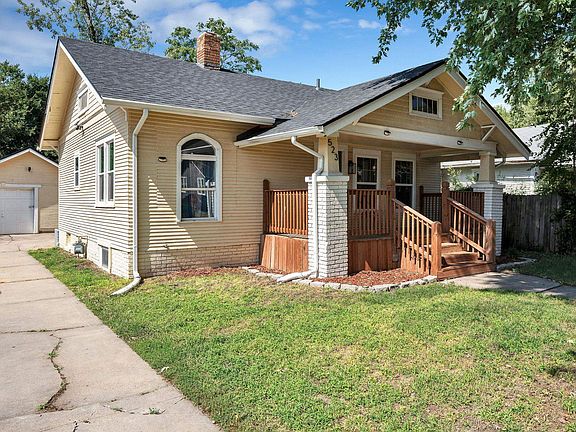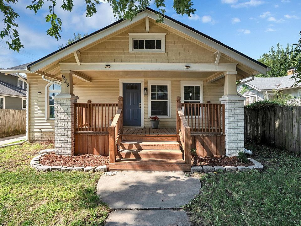 Welcome to 523 N Volutsia, a stylishly updated 1925 bungalow perfectly situated near the vibrant ReVolutsia district, Wesley Hospital, and local favorites like Tapas and Tequila, and just a quick drive to downtown Wichita. This 4-bedroom, 1.5-bath home offers over 2,100 square feet of living space, including a finished basement. Inside, enjoy fresh flooring, new paint, stylish lighting, and a cozy fireplace. Enjoy a kitchen refreshed with new cabinets, warm butcher block counters, stainless appliances, and a charming farmhouse sink, paired with bathrooms updated with custom tile and contemporary fixtures. The finished basement adds a bonus room, half bath, and laundry hookups, perfect for extra living space or a home office. Outside, a fenced yard and detached one-car garage provide privacy and convenience. With updated plumbing and a newer roof, this move-in ready home blends classic charm with modern comfort in a fast-growing neighborhood.