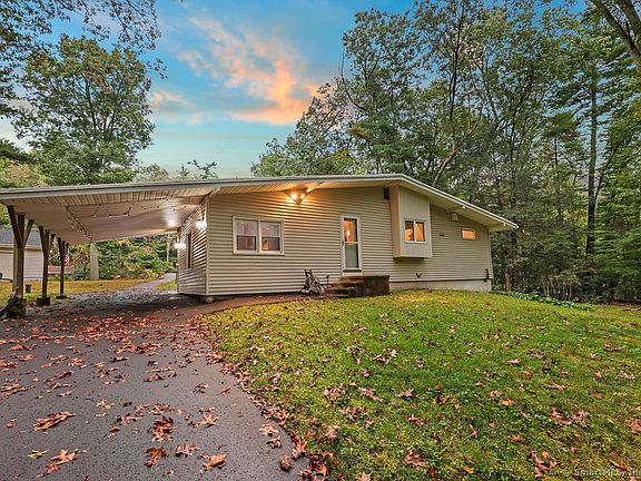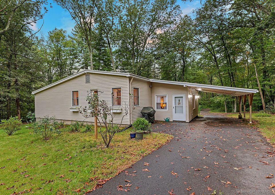 Single floor living at its' finest in a serene wooded location. This home blends modern living and natural tranquility in convenient Avon. The home's exterior with large two car detached garage and single car attached carport blends seamlessly with the surroundings, providing a welcoming approach while maintaining a sense of seclusion. Thoughtfully updated throughout, the property presents a modern day aesthetic designed with comfort and ease of living. Upon entry, the open concept layout offers a sense of spaciousness with the main living areas, including the living room, fireplaced dining space and kitchen flowing effortlessly together creating an inviting environment ideal for daily living as well as entertaining. Notice large windows maximize natural light, while custom blinds can provide privacy. Recent updates are everywhere throughout. The kitchen, central to the floor plan, is modern with beautiful countertops and ample storage. Updated flooring and paint throughout add to the neutral palette. This home provides an updated living experience set within a peaceful, natural environment. Great for anyone who wants to downsize or is looking for a condo alternative.