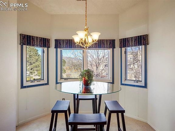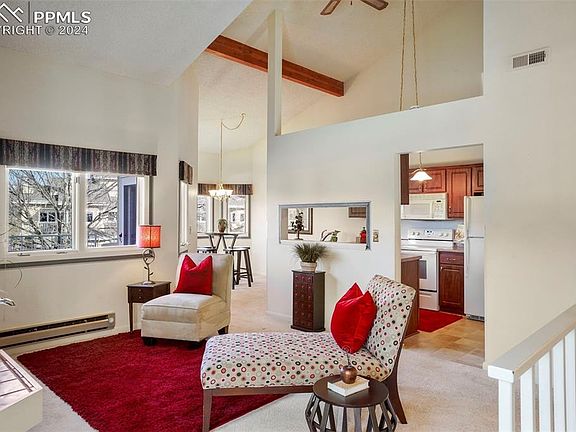 This hidden gem is a must see! Tucked away in the coveted west side of town, you’ll find this TREASURE of a home! How this home works is that you walk in on the ground floor, then go upstairs to the unit. Everything is on the second level. Garage is on the main level. So it’s a ranch-style home. Beautiful, quiet condominium with an amazing view! Enjoy coffee on the deck and you’ll feel like you’re at a mountain retreat. Spectacular sunsets! You’ll also find a kitchen with plenty of countertops and cabinetry. All appliances included. Lovely separate dining room, inviting living room, and the master bathroom has an en-suite bathroom. Second bedroom could be an office or study. Two FULL baths. Inviting wood fireplace. This is just a perfect unit in a quiet location in Colorado Springs. And one more thing: you know those antiseptic condominium complexes that look like commercial properties, and have used EVERY INCH of the property to build on with NO parking and NO elbow room? Well, this is NOT that. Plenty of parking and wide open space and room between buildings. Act now as this one won’t last!