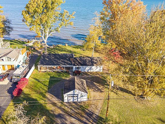 This inviting 2-bedroom, 1-bathroom ranch offers a rare opportunity to own a slice of Lake Ontario’s serene shoreline, boasting 138 feet of private lake frontage on a generous .96-acre lot. Step inside to discover a warm, functional layout designed for relaxed lakefront living. The living room, anchored by a cozy wood-burning fireplace, invites you to unwind with breathtaking lake views right from the couch, now enhanced by brand-new windows and a sleek sliding door installed this fall, flooding the space with natural light and panoramic water vistas. Adjacent, the dining room provides a distinct yet connected space for meals, framed by the same stunning lake scenery. Vinyl plank flooring flows through the main living areas, complemented by plush new carpeting in the bedrooms, creating a balance of style and comfort. Year-round comfort is assured with a 2024-installed Mitsubishi mini-split system, offering zoned heating and cooling for personalized climate control. Storage is never an issue, thanks to a spacious 2-car attached garage with overhead loft space and an additional 1-car detached garage for extra gear or projects. Outside, the expansive, level lot stretches toward the water, offering endless possibilities for outdoor enjoyment—think morning kayaks, afternoon picnics, or evening bonfires under the stars, all steps from your door. Whether you’re seeking a year-round retreat or a seasonal escape, this move-in-ready home delivers low-maintenance living with direct access to the lake’s tranquil beauty. With its recent upgrades, ample storage, and prime waterfront location, this property is a gateway to the laid-back, lake-centric lifestyle you’ve been dreaming of. Schedule a showing today to experience the calm and charm of 523 Ontario Dr for yourself. OPEN HOUSE Saturday 11/1 from 11:00AM-1:00PM.