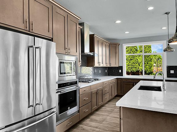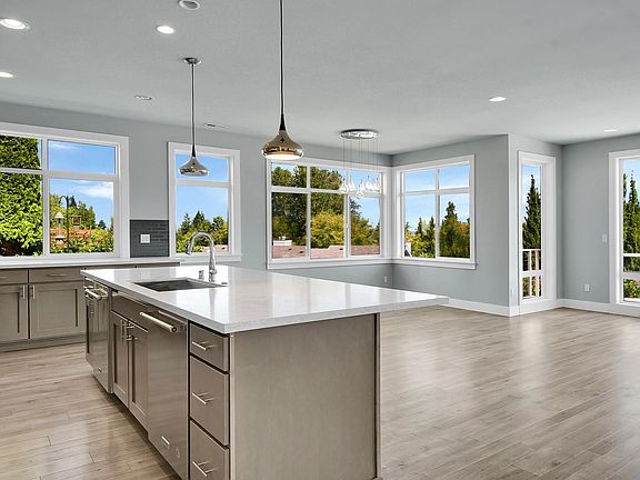 Walkable to everything Edmonds offers. Privately tucked at the rim of the Edmonds Bowl, this luxe 4-bed built by Echelbarger Homes offers high-end finishes & a generous open-concept great room with 9' ceilings, millwork, and walls of windows letting in abundant natural light + territorial views including partial Sound & Mt. Baker. Chef's kitchen boasts oversized island with seating & tons of storage, quartz counters, shaker-style cabinetry, & stainless-steel appliances. Trex deck extends living & entertaining outdoors. Primary Suite on main w/ own fireplace, deck access, walk-in closet with built-ins & 5-piece bath. Lower level includes a bonus room & guest suite with 2nd full kitchen & bath. Mudroom/laundry room with utility sink. A/C for year round comfort. Ample storage throughout. Huge crawlspace for even more storage. Flat backyard with room to roam.