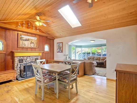 This Vista View home has great modern updates, along with vintage charm. The home is in a Quiet area about a mile east of 78, on a small private culdesac, off the main street. ~ The home has wonderful cool breezes (like coastal breezes) that's come up from the west. ~ This home has been updated throughout. Upgrades include: composition roof. Custom kitchen with beautiful cabinets, counters, appliances, custom recessed raised ceiling lighting, all upgraded electrical and plumbing. It has Vaulted wood ceilings, in the Living home. Updated lighting, newer windows, wood flooring. And a Beautiful vintage stone fireplace.. ~ There is a Large patio adjacent to home, where it would be easy to add more living space. There is large Wood deck at front of house. The Custom workshop, (original 1 car garage) could be small ADU, or extended for extended garage. ~ ~ ~ The Sunset views here are wonderful! From the natural stone pool and waterfall hot tub, deck (Above the back of home up on the hill) are Unbelievable! ~ ~ There is also a garden area up on the hill. ~~ there are several fruiting trees: lemon, fig, avocado, pomegranate and room for more ~ "More Pictures will be coming....'