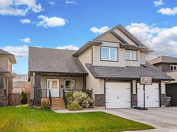 Welcome to 523 Redwood Crescent — a beautifully finished two-storey home perfectly situated in one of Warman’s most sought-after locations! This stunning property sits directly across from scenic walking paths and a tranquil pond, offering the ideal mix of small-city charm and family-friendly convenience. From the moment you arrive, you’ll love the curb appeal — a stone and vinyl exterior, covered front porch, and triple concrete driveway leading to the double attached garage. Step inside to a bright, open-concept layout with soaring vaulted ceilings and a gorgeous feature wall with built-in shelving and a cozy gas fireplace. The kitchen is the heart of the home, featuring granite countertops, a large island with seating, stainless steel appliances, and ample cabinetry plus a spacious pantry for extra storage. A large dining area opens to the covered back deck — perfect for entertaining or relaxing while overlooking your fully landscaped yard complete with pergola. Upstairs, you’ll find three bedrooms including a spacious primary suite with a walk-in closet and beautiful 4-piece ensuite. The convenient second-floor laundry (washer & dryer included!) adds everyday ease. Downstairs, the professionally finished basement includes a stylish family room with a high-end 5.1 surround sound system — ideal for movie nights or watching the game. Additional features include central air conditioning, central vac, triple-pane windows, and plenty of thoughtful touches throughout. Take a walk through from the comfort of your home — virtual tour available in the listing! Located steps from the park, walking trails, and school, this Warman home truly has it all — space, style, and location!