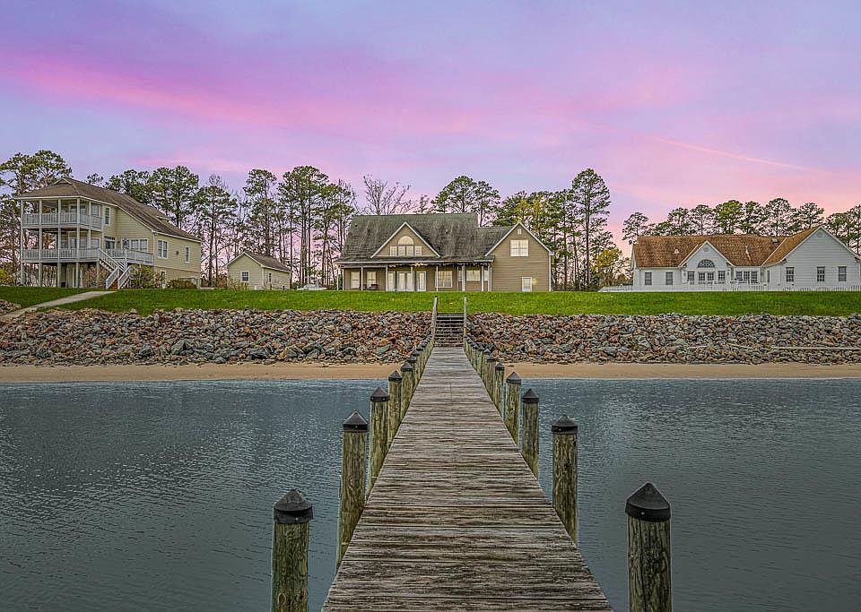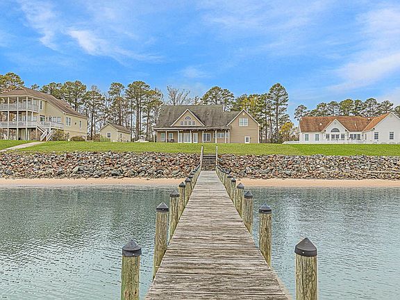 Stunning waterfront Cape Cod located on the banks of the Rappahannock River with an awesome sand beach and pier! This home is located on a amazing .84 acre waterfront lot in Riverbreeze neighborhood. You will enjoy the summer breezes on your large rear porch while overlooking the Rappahannock River. The open floor plan through the kitchen and family room has great views, hardwood floors, and is wonderful for entertaining! The dining room is conveniently located just off of the kitchen and comes with crown molding and hardwood floors. The primary bedroom is located on the first floor and has a large walk in closet with full bath! Upstairs you will find three more spacious bedrooms that share a hall bath. The two car garage is massive and has plenty of room for all of your river toys. To the right and the left of the pier you will enjoy your own private SAND beach! The pier is a perfect place to hang out in the summer and enjoy fishing, boating and all of the fun on the Rappahannock River!