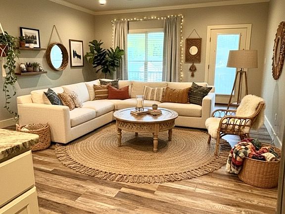 Odl blindsDouble lotLots of privacyMatching granite countertopsLots of natural lightOne level brick homeVinyl plank flooring