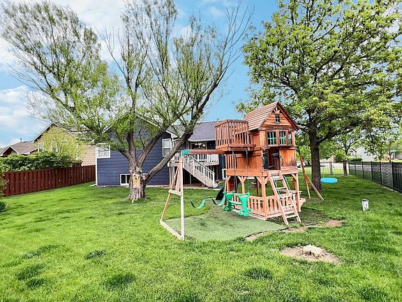 Don't miss out on this charming, well-maintained west Wichita home! Located in Auburn Hills and sitting on a large corner lot, 523 S. Limuel offers 2,726 sq ft of total living space with 5 bedrooms and 3 full baths! Conveniently located near shops, restaurants, the Auburn Hills golf course and situated in the Goddard School district, this home checks all the boxes! Upon entering the house you will notice the warm open floor plan and vaulted ceilings along with the large picture windows providing a ton of natural light. Interchanging between the living room to the kitchen, you will notice the two-way fire place as it guides you to the wide open beautifully updated kitchen. The kitchen/dining area features stainless steel appliances, tons of counter space and cabinetry along with an island and coffee bar. Take your morning coffee and head out onto the deck with access from the kitchen through the sliding glass door. Once outside, enjoy the view of the large back yard and mature trees. The mud room is off the kitchen and provides custom built storage benches along with an additional pantry space. Down the hall, you will find the primary bedroom where you will notice the tall ceilings and corner window with access to the deck, producing natural light along with a light and airy vibe. The en-suite boasts a corner oversized tub, shower, double vanity, glass block window and a walk-in closet. The main floor also has two additional bedrooms and a guest bathroom. Entering into the basement through beautiful french doors is a large family room with a fireplace along with surround sound speakers and windows providing tons of natural light! Bedrooms 4 and 5 and a large 3rd full bathroom finish out the basement. The laundry is located in the large storage area. Sprinkler system on irrigation well!