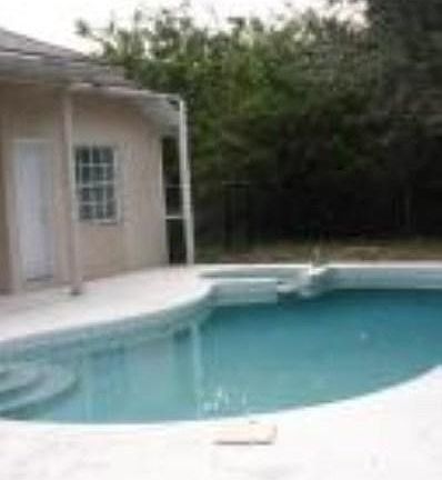 Spacious newer CBS home on an oversized 1/3 acre fenced corner lot. Beautiful free form pool. Newly renovated. New carpet, paint, air conditioner, thermostat, baseboards, faucet and range. Even the garage floor has been painted. 3 bedrooms, 2 full baths, a 2 car garage and covered lanai complete this lovely home. Close to the turnpike for an easy commute. Buyer is responsible for Doc Stamps.