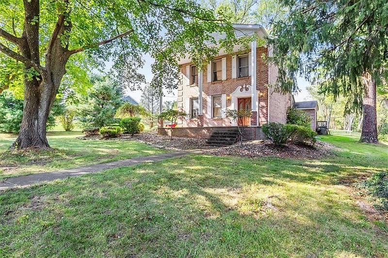 Ample room sizes and high ceilings are highlights of this stately, 2 story, brick home! You'll love entertaining guests in the huge kitchen and dining room. Sunlight abounds through the large windows and 3 skylights in the kitchen. Plus, the chef of the family will appreciate the abundance of kitchen cupboard and counter space. The dining room features 2 chandeliers, crown molding, a chair rail, and built in shelving. There is plenty of room to enjoy the outdoors on this 2.27 acre lot. The covered front porch is 26' x 8' and the back patio is 10' x 9'. Plenty of parking is available for you and your guests on the long, asphalt driveway. The home has been updated with a brand new gas furnace and hot water tank. There is hardwood flooring under the carpets on the main level and the upstairs as well.